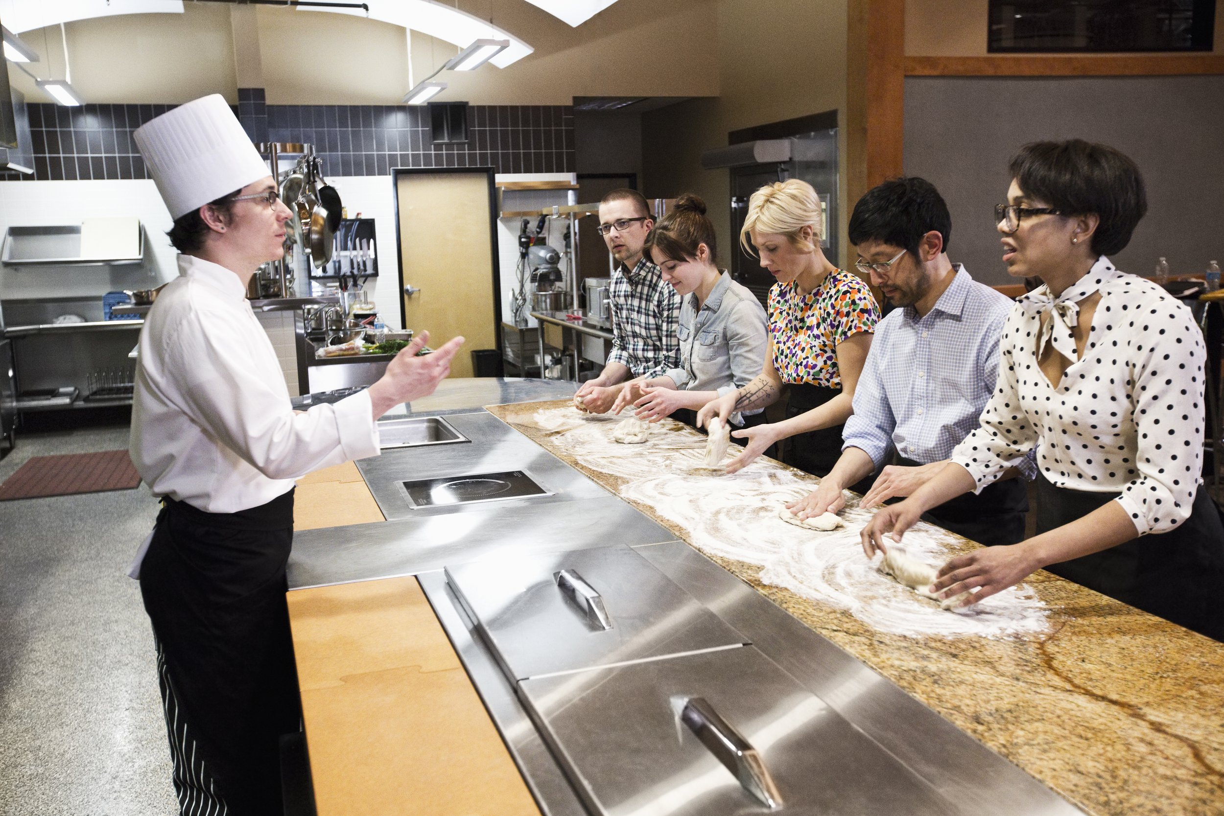 Cooking classes split teams into smaller pods—introverts handle prep, extroverts present