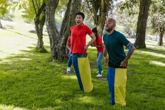 Mini-team competitions in a park or open field—relay races, tug of war, obstacle courses, and more.